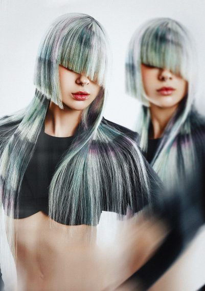 Lime yeşilinden eriyik altına uzanan cesur geçişler, bu arketipin enerjisini temsil ediyor. Saçta obsidyen ve gümüş yansımalarla birleşen bu renkler, yaratıcılığın ve özgüvenin patlamasını simgeliyor. “Power Twin”, potansiyelin beklemeden eyleme geçtiği, hareketin enerjisini içinde barındıran bir figür. Bu görünüm, modern kadının cesur, yenilikçi ve sınırsız yönünü yansıtıyor.